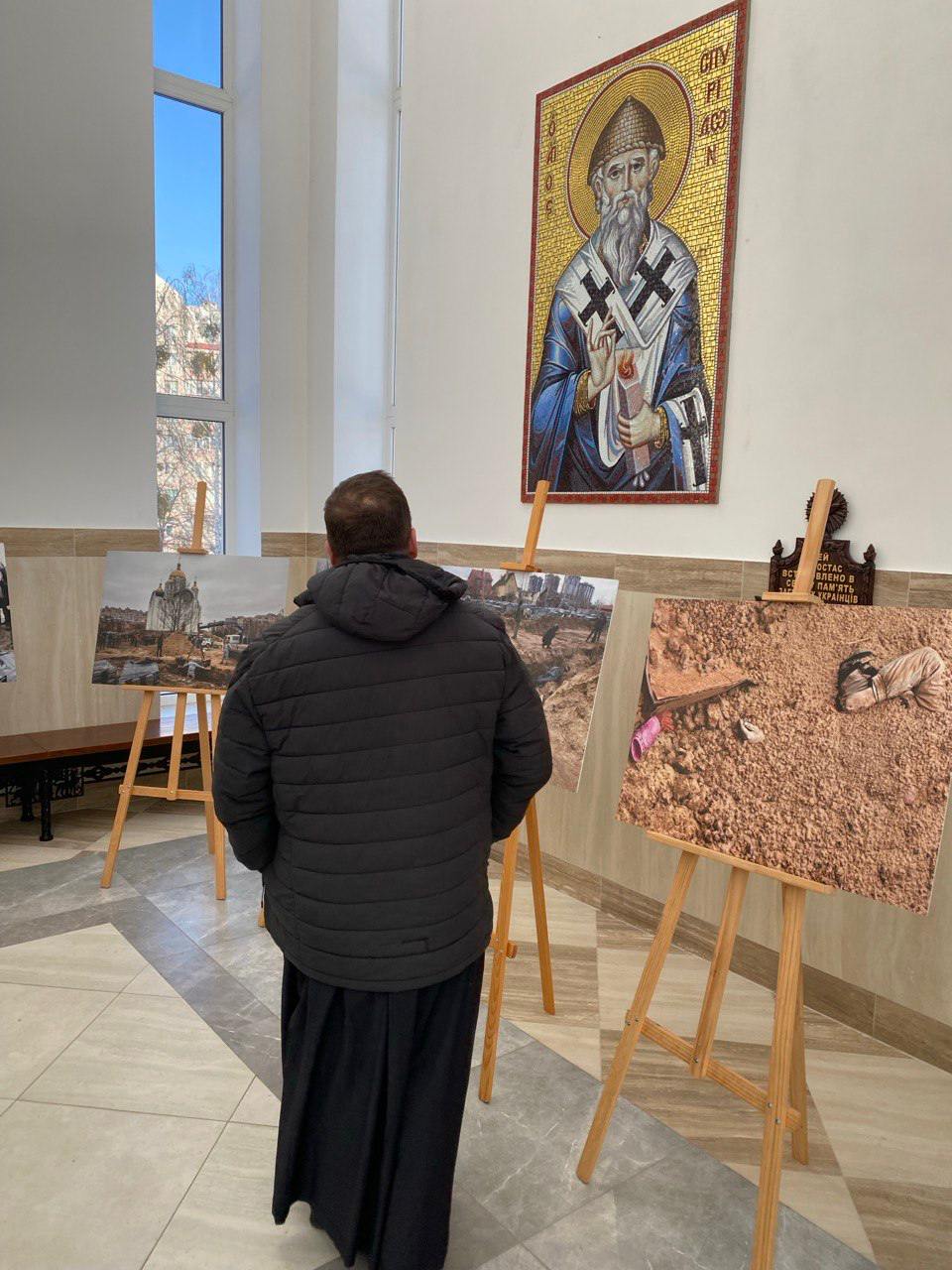 Після молитви члени братства оглянули фотовиставку, присвячену окупації Бучі, яка розміщена в стінах храму.
